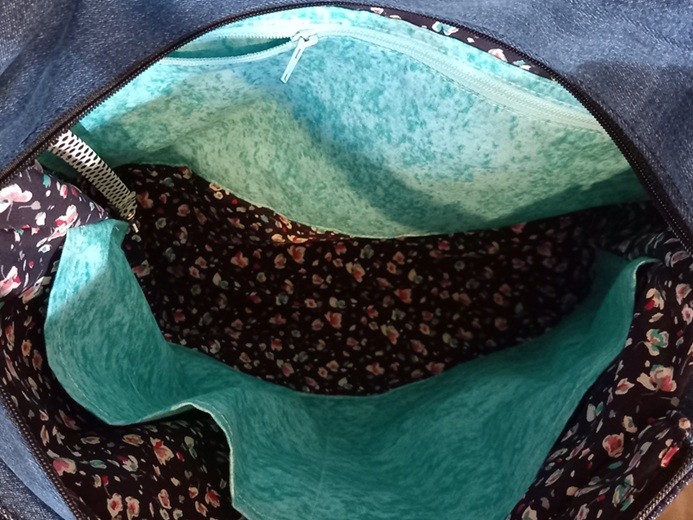 Il est doublé d'un tissu fantaisie avec une poche zippée et une poche plaquée divisée en 2 parties.