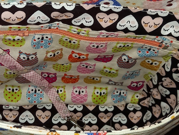 L'intérieur est doublé d'un tissu en coton fantaisie avec une poche zippée.