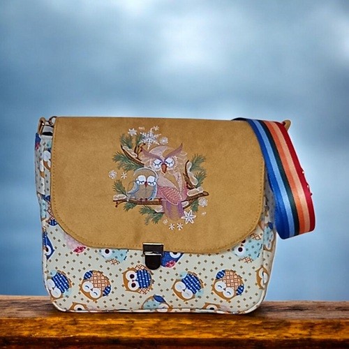 On commence l'année en beauté, avec ce sac à bandoulière en tissu imprimé de chouettes.