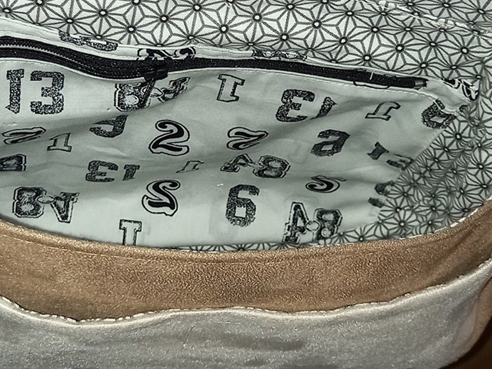 Il est doublé d'un tissu en coton avec une poche zippée, au dos une seconde poche zippée bien pratique,