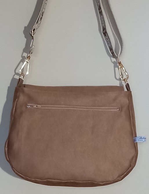 Magnifique sac besace en suédine 2 tons de beige, une tête de tigre brodée sur le rabat.