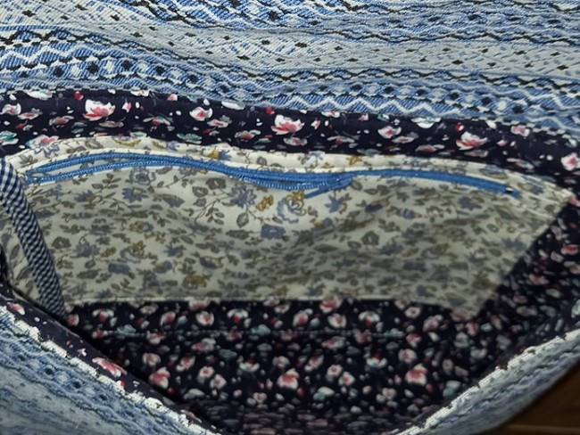 Il est doublé d'un tissu fantaisie avec une poche zippée.