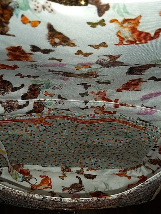Il est doublé d'un tissu fantaisie avec une poche zippée.