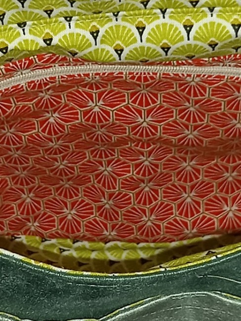 Il est doublé d'un tissu fantaisie avec une poche zippée à l'intérieur,