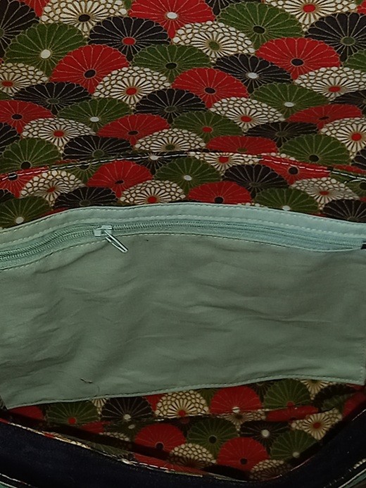 Il est doublé d'un tissu fantaisie avec une poche zippée à l'intérieur,
